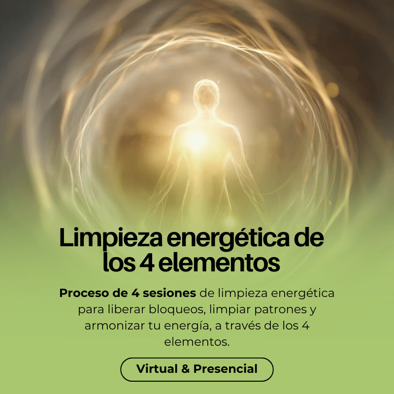 Proceso terapéutico de 4 sesiones donde trabajamos con los elementos tierra, agua, aire y fuego para liberar bloqueos, limpiar patrones y activar movimientos energéticos en tu vida.